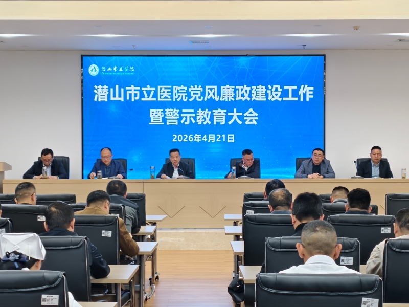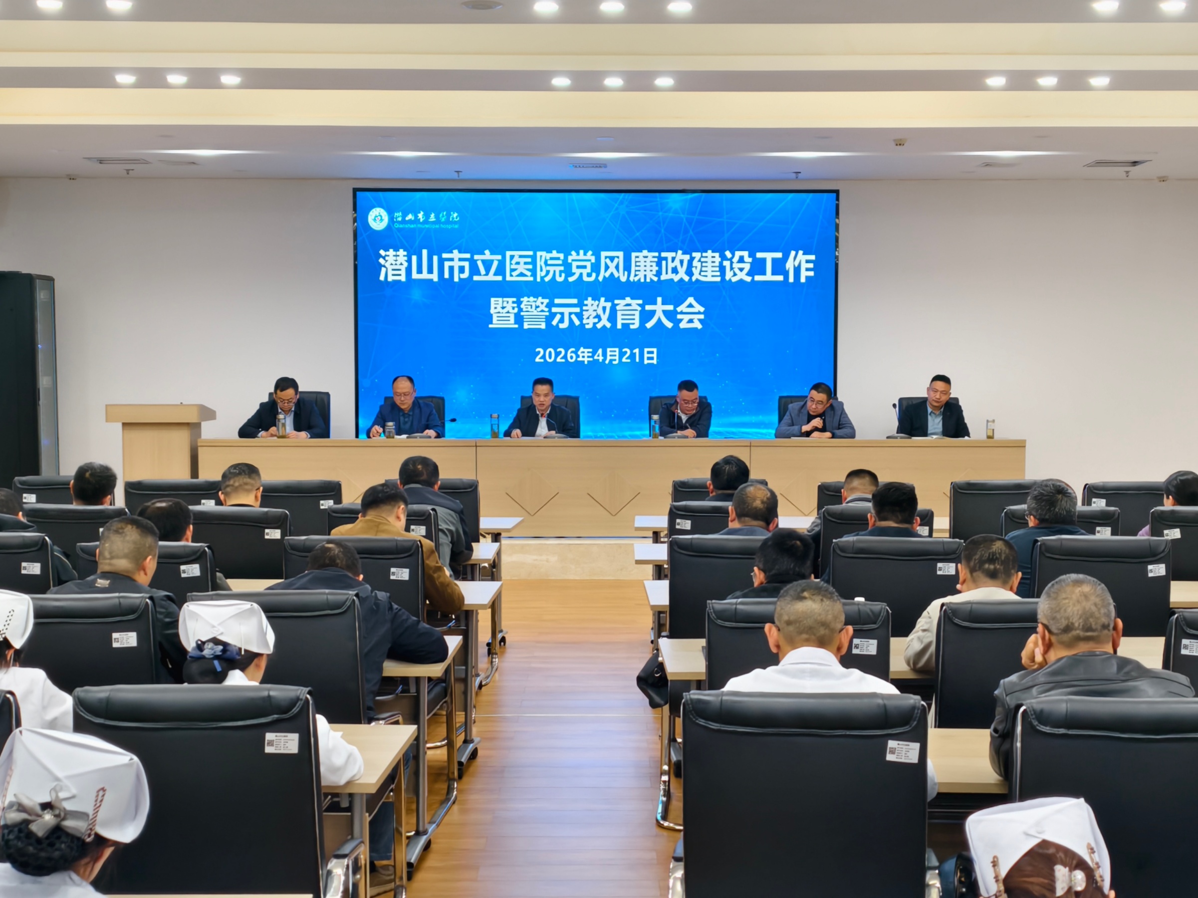4月21日下午,潜山市立医院召开2026年度党风廉政建设工作暨警示教育大会。医院党政班子成员、各党支部书记、行政及临床医技科室负责人、护士长、医共体分院院长等110余人参加会议。
